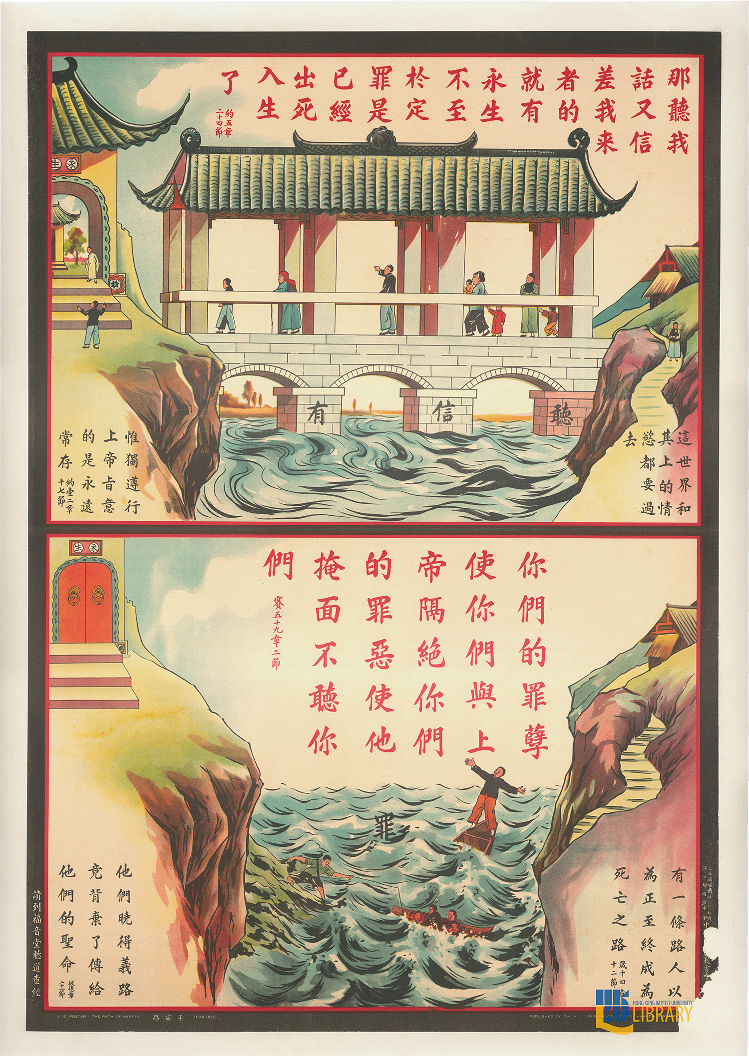 The Path of Safety True Freedom Welcome Posts navigation 1 2 Next page → Filter Posters Category All Category Biblical Stories (198) Jesus (101) Christian Instruction (284) Biblical Authority (22) Catechism (37) Family (97) Memory Verses (39) Mission (8) Moral Instruction (30) Neighborhood Sunday School Lessons (35) Theology (4) Evangelism (163) Before & After (34) Crisis (27) Imprisoned (7) Invitation (23) Means of Salvation (43) Too Late (2) Two Paths (19) Nationalist (29) Social Issues (39) Evils (13) Health (13) Work (8) Traditional Art (124) Date All Date 1947 (1) 1907 (1) 1910-1929? (2) 1916 (1) 1920 (11) 1920-1929? (1) 1921 (2) 1923 (4) 1924 (1) 1925 (2) 1927 (5) 1928 (1) 1929 (25) 1931 (2) 1932 (1) 1933 (13) 1934 (6) 1935 (13) 1936 (7) 1937 (18) 1938 (11) 1940 (5) 1941 (7) 1942 (8) 1944 (1) 1945 (5) 1946 (1) 1948 (5) 1950 (9) 1951 (2) 1961 (1) Series All Series Bible Flyer (5) Bible Illustrations (18) Bible Poster (4) Bible Testimony (3) Bible Texts and Flowers (5) Bible Texts and Landscapes (3) Calendar 1937 (7) Chinese Characters (2) Consecration Hymn (2) Family Life (10) Golden Texts (20) Gospel Illustrations (4) Gospel Posters (7) Gospel Preaching Themes (2) House Built on the Rock (3) How to Get Blessed (4) Looking into the Human Heart (7) Missionary Poster (2) Neighborhood Sunday School Lessons – Pictures (31) Neighborhood Sunday School Lessons – Songs (20) New Life Movement (20) Offer Your Body as a Living Sacrifice (8) Parable of the Banquet (2) Parable of the Sower (6) Parabolic Picture Teaching (2) Peace and Trouble (4) Pictorial Preaching Series (5) Pictures for Children’s Services (11) Prodigal Son (2) Sin-Salvation-Purity-Glory (5) Social Evils (4) Text Poster (7) The Door (5) The Eighth National Convention of the Chinese YMCA (2) The World of Our Father In Heaven (29) Ways to Escape the Pit (4) Words of Life (8) Xinxiang (35) Tags All Tags 1929 (2) 1931 (1) 1933 (1) 1934 (1) abacus (5) Adam and Eve (4) alcohol (3) angel (44) animal (43) baby (13) bed (13) before & after (2) Bible (18) big-character poster (169) Bishop (9) black (44) blind (5) blue (42) boat (14) book (48) bridge (9) burden (23) catechism (1) chain (7) children (91) christian instruction (2) church (6) cliff (19) clock (5) cloud (44) confession (14) crisis (1) cross (90) crown (9) cry (10) daily life (36) darkness (21) death (22) dinner (6) disaster (15) disease (6) door (39) drug (6) earth (12) education (43) evangelism (5) evening (11) face (6) family (34) farming (26) female (43) fighting (10) fire (18) flag (8) flower (31) food (28) freedom (5) friends (16) fruits (20) gambling (6) Garden of Eden (3) gathering (94) God (15) green (83) halo (88) hand (12) health (19) heart (24) heaven (30) hell (14) help (39) Jesus (128) lamb (10) light (68) male (118) map (10) Mary (62) master (16) medicine (3) memory verses (1) minority language (7) mirror (2) miss h.m. clark (2) money (16) monk (2) moon (17) mountain (40) music (2) old (12) order (7) painting (3) people (191) playing (11) police (1) poor (8) portrait (11) prayer (57) prostitute (4) red (141) rich (8) river (38) road (66) rock (21) Roman Catholic (88) sand (2) scales (5) seasons (1) seeds (13) servant (16) sin (53) sky (29) sleeping (8) snake (19) snow (2) soldier (15) song (26) star (5) stationery (4) sun (14) Sun Yat-sen (1) Sunday school (25) temple (24) text (83) tomb (11) tools (4) train (1) tree (110) two paths (2) vaccine (3) walking (22) water (3) window (13) working (20) yellow (102) youth (13) 路 (2) Publisher All Publisher Shanghai Publishing Company (3) Alliance Press-Chongking-Hongkong-Singapore (2) Anglican Church in China (1) Baptist Publication Society (4) Canadian Mission Press (1) Catholic University Press (35) China Christian Council Min Zhong Section Chang Le District Committee (1) China Inland Mission (12) China Sunday School Association (4) China Sunday School Union (18) Chinese Government Information Office (1) Chinese National Drug Banning Society (2) Christian Book Room (21) Christian Literature Society (92) Christian Literature Society Shanghai (9) Christian Witness Press (19) Civil Development and Design Committee of National Council of the Young Women’s Christian Association (2) Druck and Verlag Froese & Company – Basel (1) Guangzhou East Embankment Eight Flags Association (1) Health and Education Organization (1) Jiangxi China Inland Mission Bible School (6) Jiangxi Nanchang China Inland Mission (2) National Christian Council of China (27) National Council of Young Women’s Christian Association of China (2) National Revolutionary Army Headquarters – Office of Politics (2) Political Work Department of the Third National Revolutionary Army (1) Religious Tract Society – London (2) Salvation Army (1) Shanghai Municipal Council (1) Standard Publishing Company (1) Stewart Evangelistic Fund (2) The Commercial Press (21) The National Union Canton-Hong Kong Strike Committee (1) The Phonetic Promotion Committee (16) The Religious Tract Society of Hankow (and Shanghai) (171) Tianjin Bible Seminary (2) Tianjin Public Health Bureau (1) Trinity Publishing (1) United Society of Chinese Youth and Military (1) Young Men’s Christian Association (5) Author All Author (Charles) Xu Jihua (1) (George) Wang Suda (25) (Luke) Chen Yuandu (38) William Holman Hunt (1) Yen Song-p’u (3) Beatrice Kitchen (29) Charles Hsü Chi-hua (1) Chen Xujing (3) Chow Chih Chen (13) Clark (1) E. Zimmerman (1) Edmund van Genechten (8) Huang Ruilong (2) Jen Chao Hai (13) Jia Lu (1) Liu Kerang (1) Lu Hongnian (Lu Hung-nien) (17) Mei Han Ke (2) Miss C.F. Tippet (5) Miss H.M. Clark (21) Miss S.J. Garland (4) Mrs. W. G. Davis (1) Mrs. Weller (1) R.W. Porteous (4) Shao Chang Lee (1) Student at Tientsin Bible Seminary (2) Tang Chunhua (1) Wang Chengxiang (1) Xie Fusheng (5) Yang Guoliang (3) Yu Liang (2) Yu Molin (2) Zhao Zichen (1) Libraries All Libraries Société des Auxiliaires des Missions Collection – Whitworth University (9) Archives & 