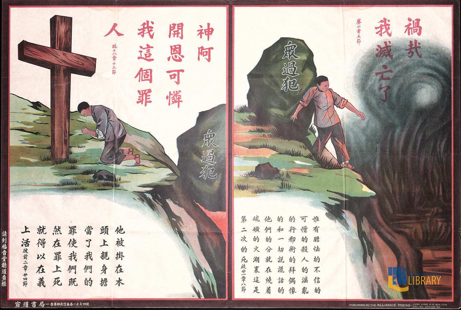 Without the Shedding of Blood there is No Forgiveness Woe is me, I am doomed; God, have mercy on me, a sinner Woe to Me if I Do Not Preach the Gospel Women’s Prayer Pictures Women’s Prayer Pictures Word as a Mirror Words of the Lord Jesus Work and Study Posts pagination ← Previous page 1 … 61 62 63 Next page → Filter Posters Category All Category Biblical Stories (218) Jesus (121) Christian Instruction (300) Biblical Authority (22) Catechism (37) Family (113) Memory Verses (39) Mission (8) Moral Instruction (30) Neighborhood Sunday School Lessons (35) Theology (4) Evangelism (163) Before & After (34) Crisis (27) Imprisoned (7) Invitation (23) Means of Salvation (43) Too Late (2) Two Paths (19) Nationalist (29) Social Issues (39) Evils (13) Health (13) Work (8) Traditional Art (124) Date All Date 1947 (7) 1907 (1) 1910-1929? (2) 1916 (1) 1920 (11) 1920-1929? (1) 1921 (2) 1923 (4) 1924 (1) 1925 (2) 1927 (5) 1928 (1) 1929 (25) 1931 (2) 1932 (1) 1933 (14) 1934 (6) 1935 (13) 1936 (7) 1937 (18) 1938 (11) 1940 (5) 1941 (7) 1942 (9) 1944 (1) 1945 (5) 1946 (1) 1948 (24) 1950 (9) 1951 (2) 1953 (1) 1961 (1) Series All Series Bible Flyer (5) Bible Illustrations (18) Bible Poster (4) Bible Testimony (3) Bible Texts and Flowers (5) Bible Texts and Landscapes (3) Calendar 1937 (7) celestial (1) Celestial icons (25) Chinese Characters (2) Consecration Hymn (2) Family Life (10) Golden Texts (20) Gospel Illustrations (4) Gospel Posters (7) Gospel Preaching Themes (2) House Built on the Rock (3) How to Get Blessed (4) Looking into the Human Heart (7) Missionary Poster (2) Neighborhood Sunday School Lessons – Pictures (31) Neighborhood Sunday School Lessons – Songs (20) New Life Movement (20) Offer Your Body as a Living Sacrifice (8) Parable of the Banquet (2) Parable of the Sower (6) Parabolic Picture Teaching (2) Peace and Trouble (4) Pictorial Preaching Series (5) Pictures for Children’s Services (11) Prodigal Son (2) Sin-Salvation-Purity-Glory (5) Social Evils (4) Text Poster (7) The Door (5) The Eighth National Convention of the Chinese YMCA (2) The World of Our Father In Heaven (29) Ways to Escape the Pit (4) Words of Life (8) Xinxiang (35) Tags All Tags 1929 (2) 1931 (1) 1933 (1) 1934 (1) 1947 (6) 1948 (19) abacus (5) Adam and Eve (4) alcohol (3) angel (47) angels (1) animal (43) annunciation (2) baby (13) bed (13) before & after (2) Bible (18) big-character poster (169) Bishop (9) black (45) blind (5) blue (47) boat (14) book (48) bridge (9) burden (23) calendar (1) catechism (1) celestial icons (1) chain (7) children (92) christian instruction (2) church (6) cliff (19) clock (5) cloud (47) confession (14) crisis (1) cross (92) crown (9) cry (10) daily life (36) darkness (21) death (22) dinner (6) disaster (15) disease (6) donkey (2) door (39) drug (6) earth (12) education (43) evangelism (5) evening (11) face (6) family (35) farming (26) female (43) fighting (10) fire (18) flag (8) flower (31) food (28) freedom (5) friends (16) fruits (20) gambling (6) Garden of Eden (3) gathering (94) God (15) green (85) halo (88) hand (12) health (19) heart (24) heaven (30) hell (15) help (39) Jesus (146) joseph (7) lamb (10) light (68) magis (1) male (118) map (10) martha (2) Mary (86) master (16) medicine (3) memory verses (1) minority language (7) mirror (2) miss h.m. clark (2) money (16) monk (2) moon (17) mountain (41) music (2) nativity (3) old (12) order (7) painting (3) people (191) playing (11) police (1) poor (8) portrait (11) prayer (57) prostitute (4) red (164) rich (8) river (39) road (66) rock (21) Roman Catholic (113) sand (2) scales (5) scroll painting (19) seasons (1) seeds (13) servant (16) sheep (1) shepherds (1) sin (54) sky (29) sleeping (8) snake (19) snow (2) soldier (15) song (26) star (5) stationery (4) sun (14) Sun Yat-sen (1) Sunday school (25) temple (24) text (83) tomb (11) tools (4) train (1) tree (123) two paths (2) vaccine (3) walking (22) water (3) window (13) working (20) yellow (102) youth (13) 家庭 (7) 路 (2) Publisher All Publisher Shanghai Publishing Company (3) Alliance Press (2) Alliance Press-Chongking-Hongkong-Singapore (2) Anglican Church in China (1) Baptist Publication Society (4) Canadian Mission Press (1) Catholic University Press (35) China Christian Council Min Zhong Section Chang Le District Committee (1) China Inland Mission (12) China Sunday School Association (4) China Sunday School Union (18) Chinese Government Information Office (1) Chinese National Drug Banning Society (2) Christian Book Room (21) Christian Literature Society (92) Christian Literature Society Shanghai (9) Christian Witness Press (19) Civil Development and Design Committee of National Council of the Young Women’s Christian Association (2) Druck and Verlag Froese & Company – Basel (1) Guangzhou East Embankment Eight Flags Association (1) Health and Education Organization (1) Jiangxi China Inland Mission Bible School (6) Jiangxi Nanchang China Inland Mission (2) National Christian Council of China (27) National Council of Young Women’s Christian Association of China (2) National Revolutionary Army Headquarters – Office of Politics (2) Political Work Department of the Third National Revolutionary Army (1) Religious Tract Society – London (2) Salvation Army (1) Shanghai Municipal Council (1) Standard Publishing Company (1) Stewart Evangelistic Fund (2) The Commercial Press (21) The National Union Canton-Hong Kong Strike Committee (1) The Phonetic Promotion Committee (16) The Religious Tract Society of Hankow (and Shanghai) (171) Tianjin Bible Seminary (2) Tianjin Public Health Bureau (1) Trinity Publishing (1) United Society of Chinese Youth and Military (1) Young Men’s Christian Association (5) 基督復臨安息日會中華總會 (1) Author All Author (Charles) Xu Jihua (1) (George) Wang Suda (25) (Luke) Chen Yuandu (38) William Holman Hunt (1) Yen Song-p’u (3) Bai Huiqun (11) Beatrice Kitchen (29) Charles Hsü Chi-hua (1) Chen Xujing (3) Chow Chih Chen (13) Cla