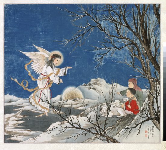 The Annunciation of the Angel to the Shepherds[The Annunciation of the Angel to the Shepherds] / Luke Hua Xiaoxian 華效先 (路加) Description: scroll, silk on paper