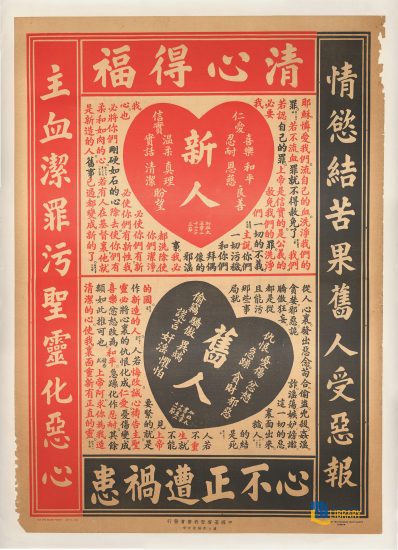 上图红心:新人 仁爱 喜乐 和平 忍耐 恩慈 良善 信实 温柔 真理 实话 清洁 盼望(加拉太五章二十二 二十三节)